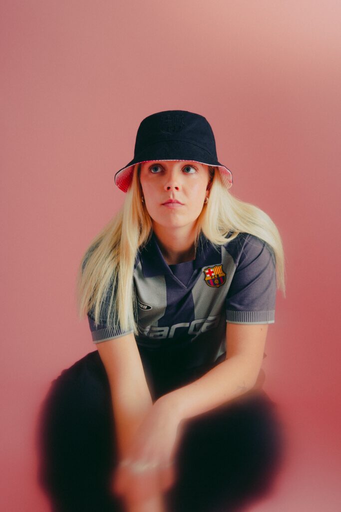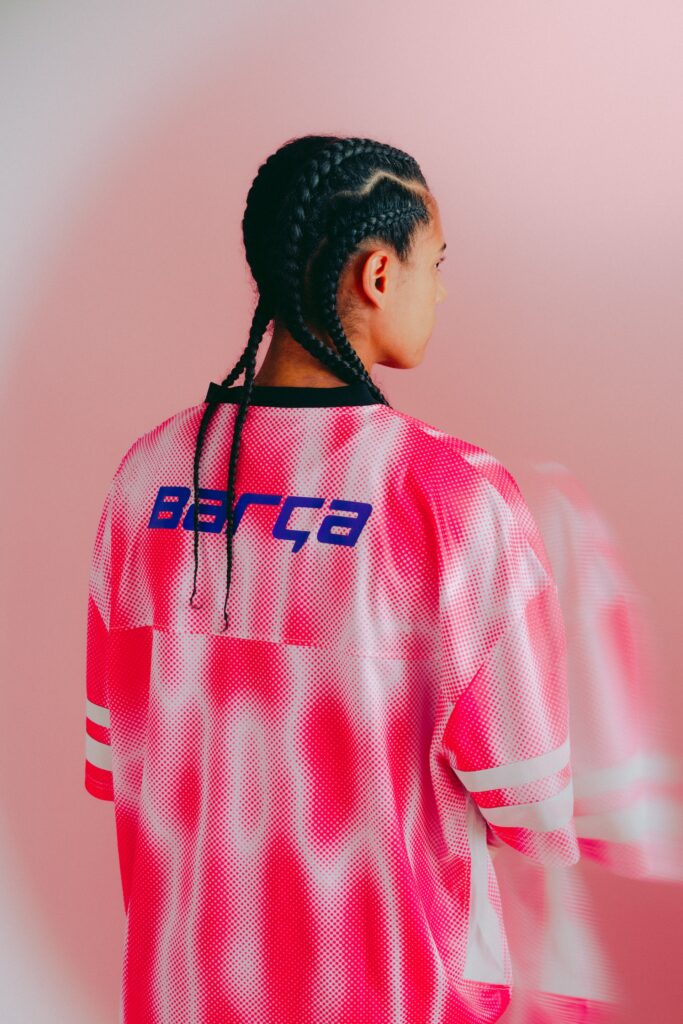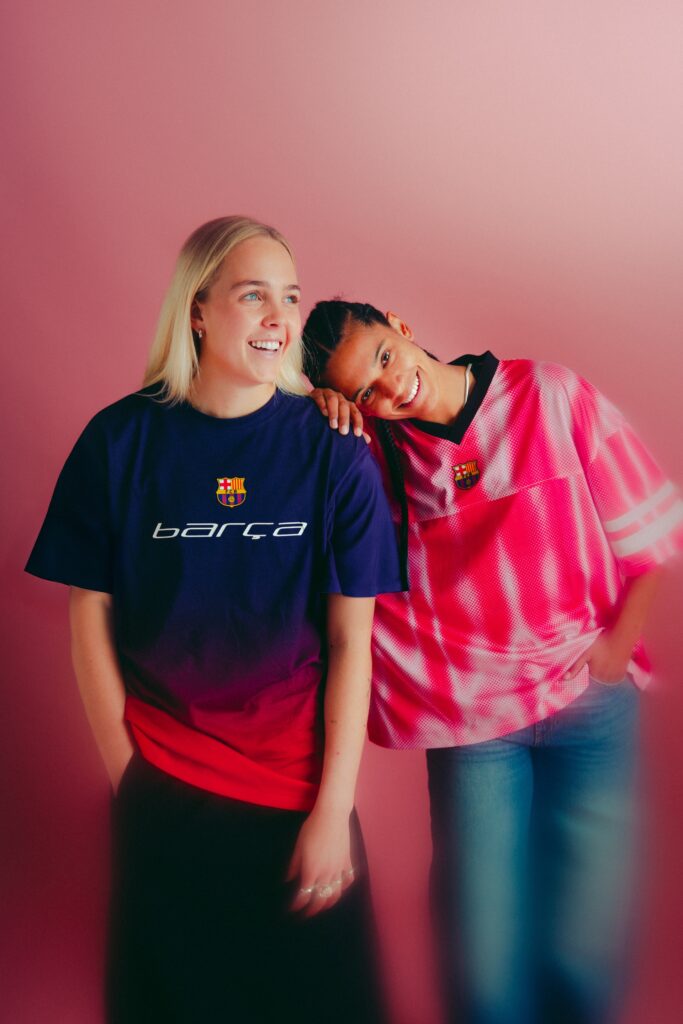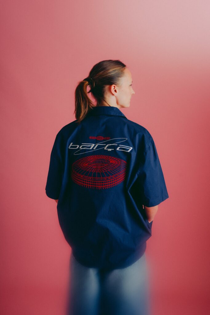 Nos encontramos con piezas frescas, de carácter relajado, en tonos vivos y tejidos ligeros para asegurar comodidad en todo momento. Camisetas con degradados, conjuntos de camisa y pantalón corto o sets de chándal con efectos visuales son algunas de las piezas de la colección. El 1899 – año de fundación del club – se convierte en un gráfico y el escudo se reinterpreta con tipografías contemporáneas, todo ello en una campaña protagonizada por las estrellas de la primera plantilla del FC Barcelona femenino.