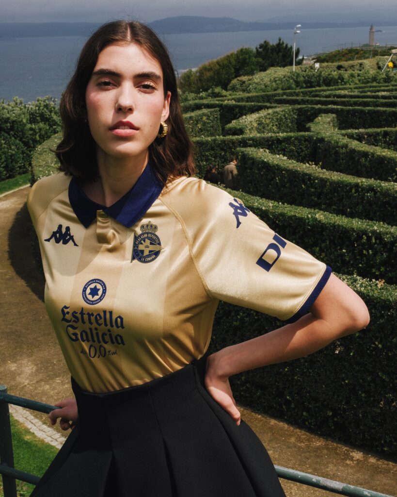 La camiseta, en tonos dorados y azules, es un tributo a aquella plantilla formada por leyendas como Djalminha, Mauro Silva, Fran o Valerón bajo la dirección de Javier Irureta y con la que el club gallego firmó una de las épocas más doradas de la historia del equipo.